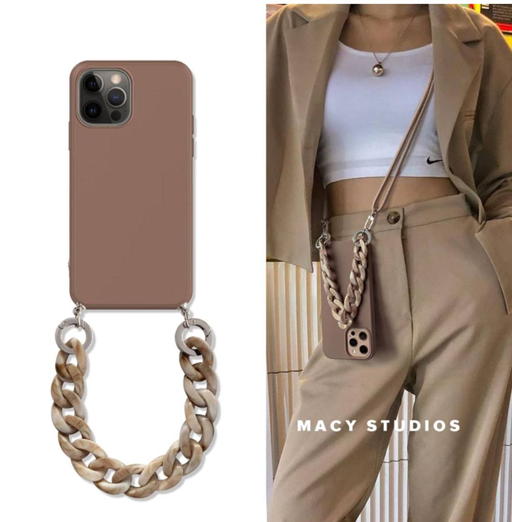 Coque en silicone de qualité, très mode. Une protection originale spécialement conçue pour l’iPhone avec dragonne et bandoulière chic et pratique.