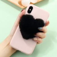 Personnalisation de la coque avec joli coeur en fourrure rose ou noir
