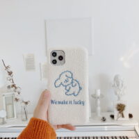 Un adorable petit mouton brodé sur la coque avec inscription: « We make it Lucky » (La chance nous sourit)