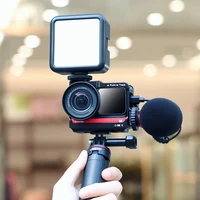 LED chaude, naturelle et froide ajustable (3200K-5600K) pour une lumière douce et confortable. Fixation compatible avec presque tous les standards actuels, compatible GO Pro. (interface filetée 1/4 pour trépied, caméra)
