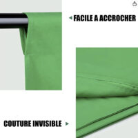 Notre fond vert est fabriqué en polyester de Qualité, Réversible. Il peut être nettoyé dans une machine à laver, les Pinces sont Robustes et permettent de fixer la Toile de Fond vert sur de nombreux Supports.